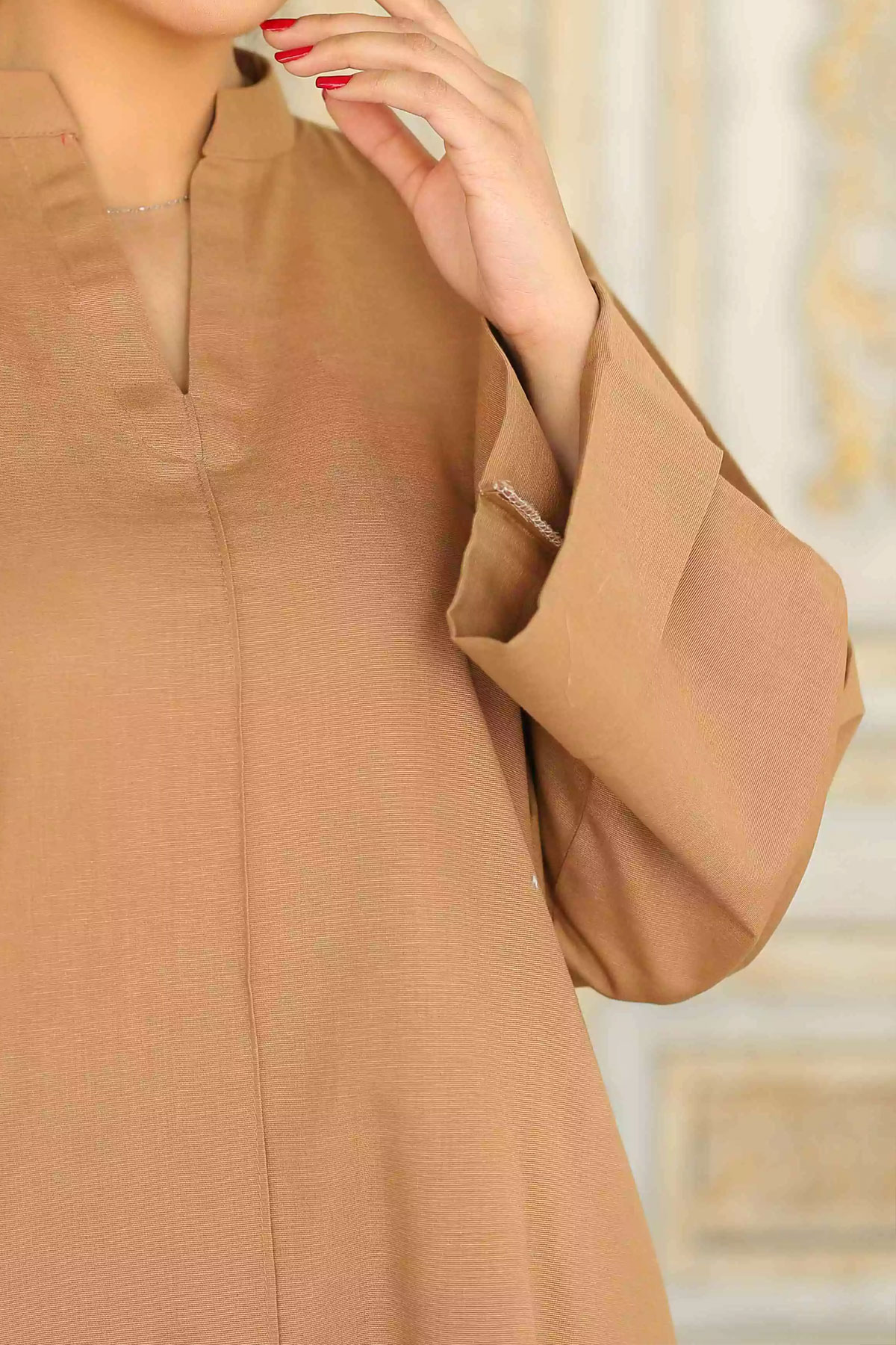 Wash light and bright colors separately. Do not twist/wring, warm iron to sequined, beaded, delicate fabrics. Do not dry in direct sunlight.